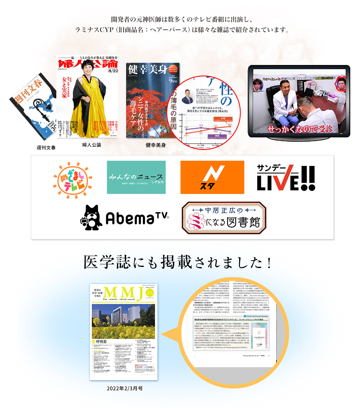 そんなとき主人が元神先生が特集されている雑誌を見つけ、そこに紹介されているラミナスCYP(旧商品名:ヘアーバース)をすすめてくれました。