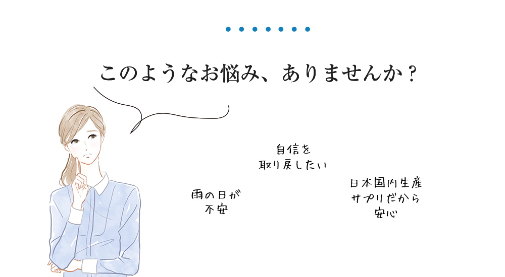 医師である私自身が製造し、実際に飲んで確認したサプリメントです。見た目が気になる女性にぜひお試しいただきたいと思います。